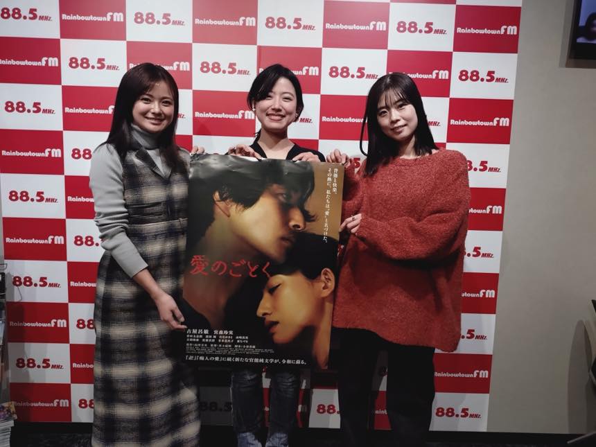 ラジオ番組 27Jan2026 映画『愛のごとく』より主演の宮森玲実さんとたなかさとさん Tweet Share Hatena Pocket RSS 今回のゲストは映画『愛のごとく』より主演の宮森玲実さんと たなかさと さんです。 Tweet Share Hatena Pocket RSS ラジオ番組 映画『安楽死特区』より撮影監督の林淳一郎さん 関連記事一覧 映画『ケイコ目を澄ませて』とシネマ・チュプキ・タバタについて ゲストは映画『窒息』より脚本・監督の長尾元さん オリジナルドラマ「恋活」より古野美優さん&松浦洋介さん 『北浦兄弟』より監督の辻野正樹さんとプロデューサー兼主役の... 清水由紀さんと2023年の映画を振り返る ゲストは映画『DAIJOBU~大丈夫』より監督・撮影・編集の木村衞...
